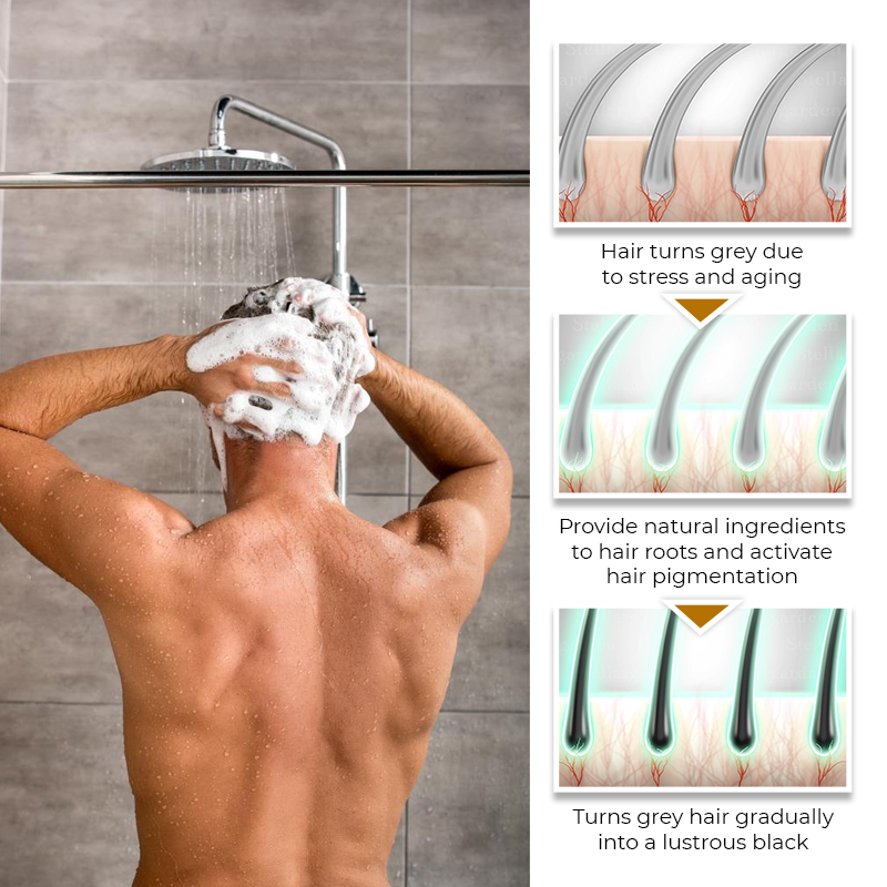 Biancat™ DarkVigor Hair Blackening Shampoo employs a meticulous four-step process, leveraging Ginseng, Angelica Sinensis, and Ligustrum to naturally darken, nourish, and revitalize your hair. This potent blend not only encourages healthy blood flow but also optimizes nutrient delivery to the scalp, harmonizes hormone levels, and kick-starts melanin production for lasting color richness.