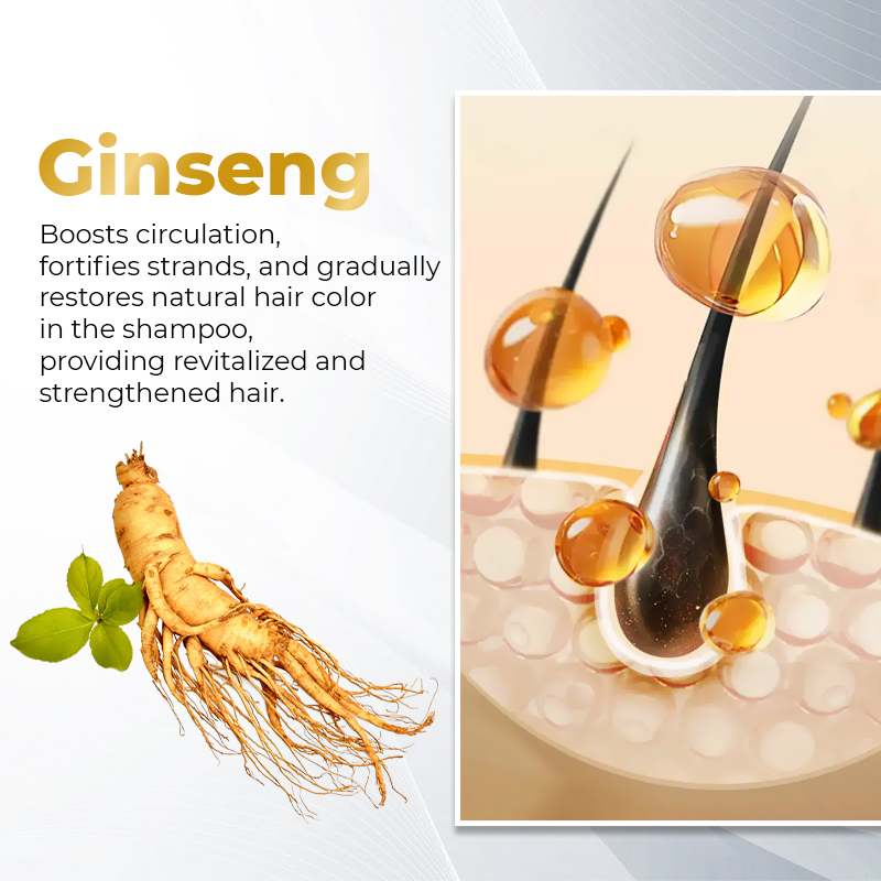Ginseng: This potent herb boosts scalp circulation and delivers crucial nutrients, combating premature graying and reviving your hair's natural vibrancy. Its antioxidants rejuvenate the scalp, ensuring richer, more youthful hair.