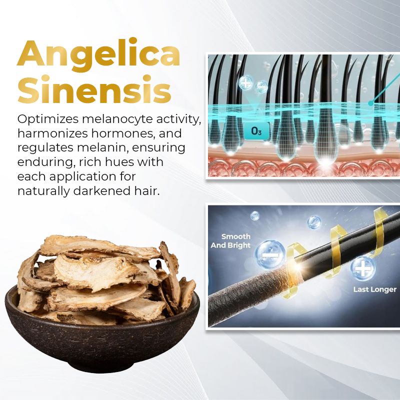 Angelica Sinensis: Known as Dong Quai, this ingredient regulates melanocyte activity, ensuring deep, consistent hair color. It harmonizes with your body to sustain rich hair shades and lasting beauty through natural melanin balance.
