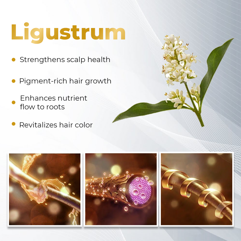 Ligustrum: This herb strengthens scalp health, enhances nutrient flow to roots, and promotes stronger, pigment-rich hair growth. Ligustrum revitalizes hair color and texture, showcasing its traditional value for healthier, more vibrant locks.